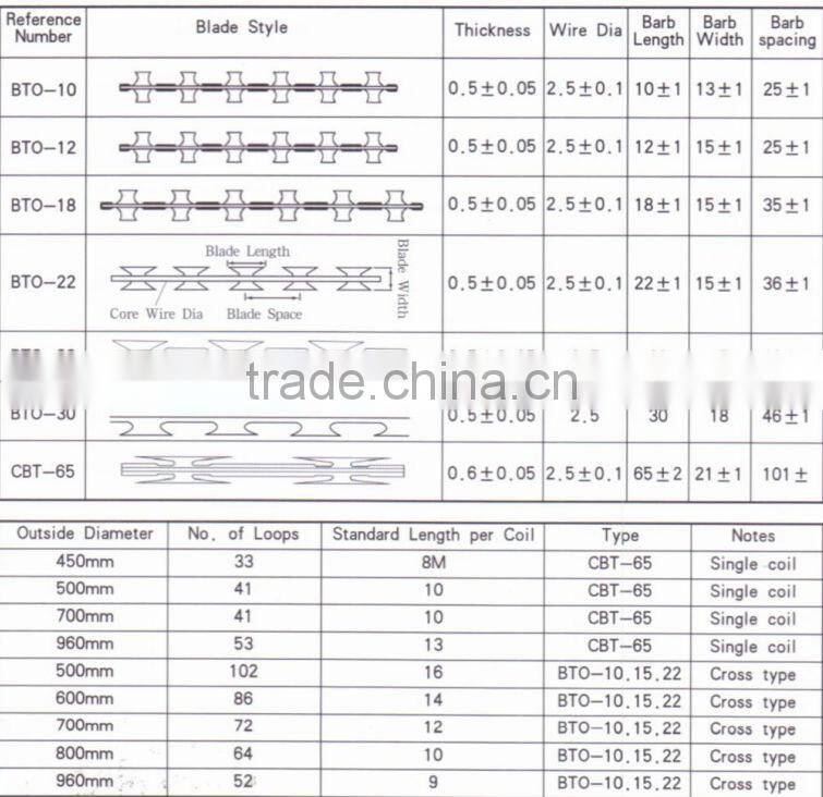 Type: CBT-65(Concertina Barbed Tape ) and BTO(Barbed Tape Obstacle)