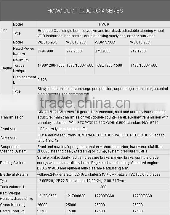 Sinotruk dump truck (6X4, 336HP) is supplied. China brand new dump trucks for sale can be customized according to the requirements of the clients, including the cab, engine, gearbox, tyre, drive type, etc. We can offer different dump trucks based on your requirement of working environment, house power and some other personalization. The professional advice can be provided for your purchase of the truck or the related spare parts. What's more, the shipment of the cost-efficient truck can be arranged in time.