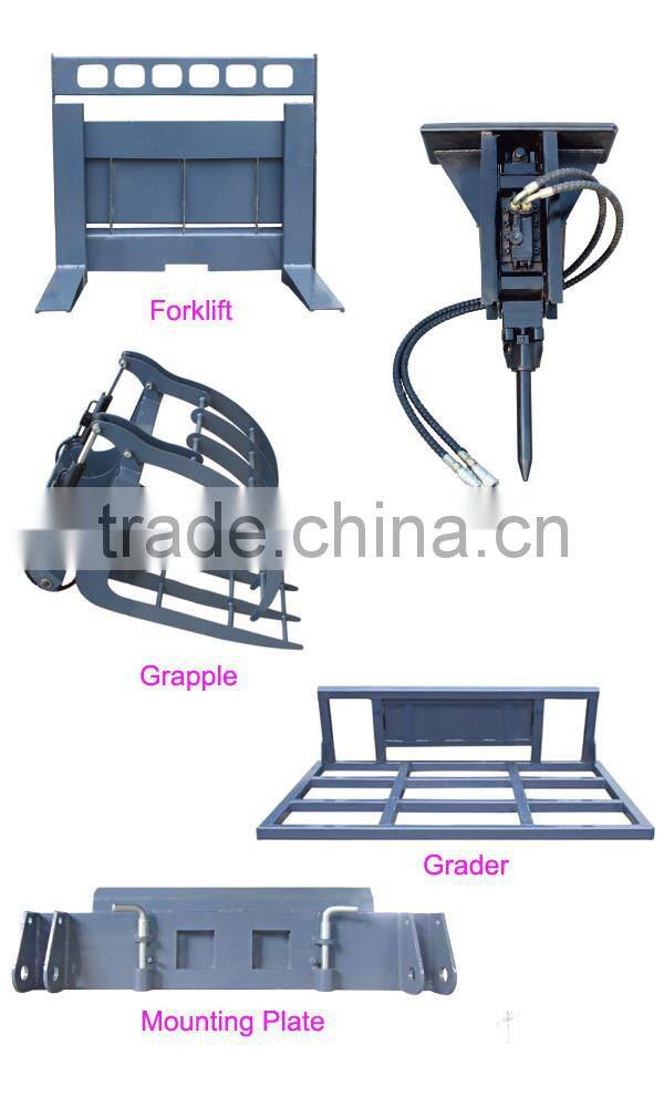 5.Rich accessories to add the value, such as quartering hammer, post hole digger, mounting plate, grapple, forklift, grader and so on.