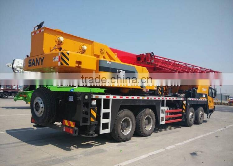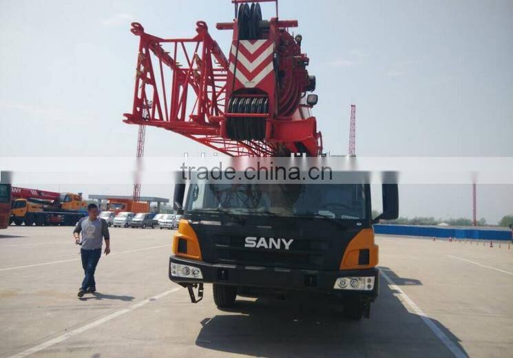 The truck crane, with spacious cab and luxurious equipments, adopts full slewing system, telescopic boom, hydraulic proportional control system and self-made full-width special purpose chassis with four axles. 8×4 drive and hydraulic power steering mechanism provides the crane with good driving performance and flexible steering.