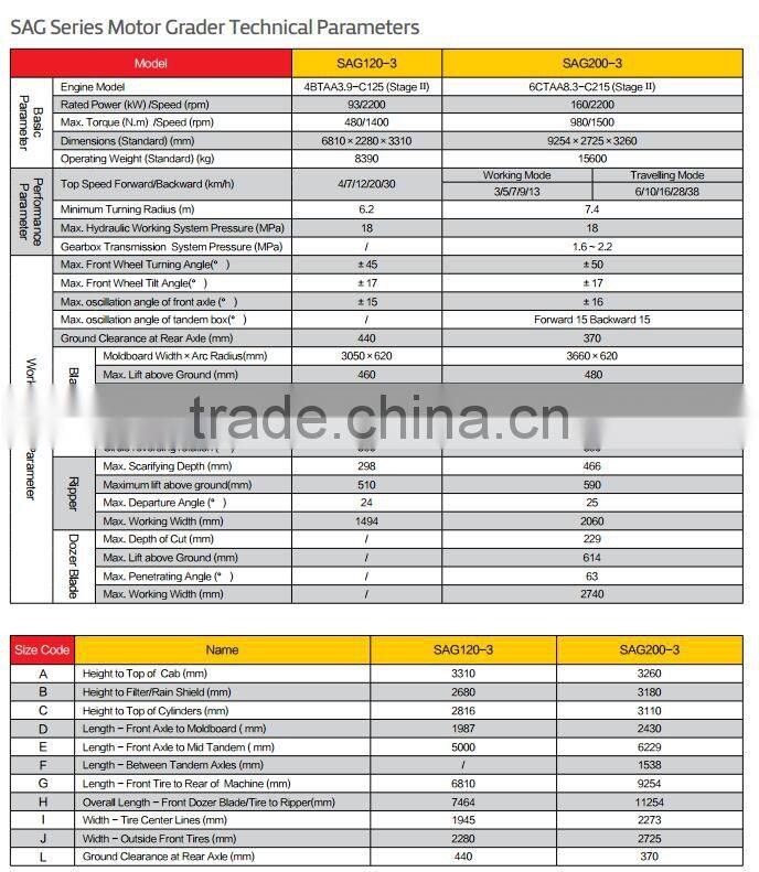 Specifications of SAG200-3 Motor Grader :