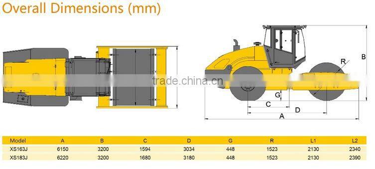 The XS163J/XS183J vibratory roller is a heavy self-propelled vibratory roller which can compact all kinds of soil layers and rock fill. The machine is suitable for modern highway, airport, embankment filling, harbour, dam, railway and mining operations. It offers different compaction depths and high efficiency.