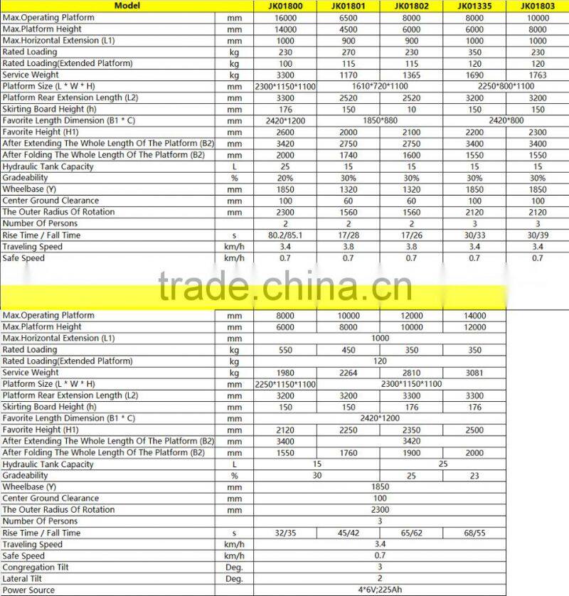 CE ISO Self-propelled Scissor electronic Arm Aerial Work Platform Jeakue JK01800