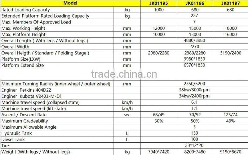 Factory Price CE ISO Terrain Scissor Aerial Work Platform JeakueJK01195
