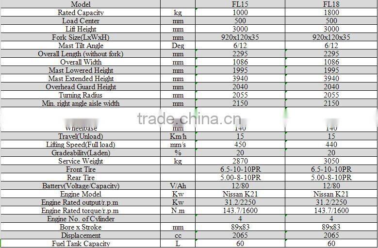 CE/ISO/GOST Approved 1.8T LPG Forklift Truck