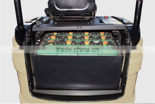 3.Instead of fixing the actuating motor as T fonts tradtionally,Eseries Electric Counterabalenced forklift Truck adopts the latest technique to put across the motor and place the battery box ar the frame.