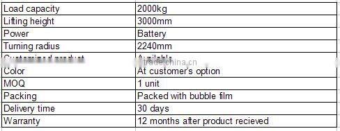 2000kg 4 wheels electric forklift Truck
