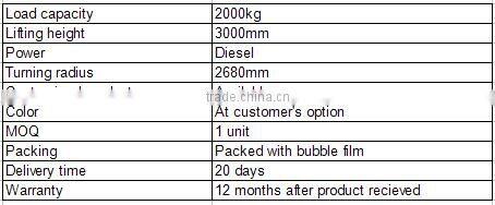 Lifting Height 3m Capacity 2 Ton Diesel Forklift