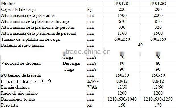CE ISO One Stage Mast Half Electronic Loading truck Jeakue JK01282