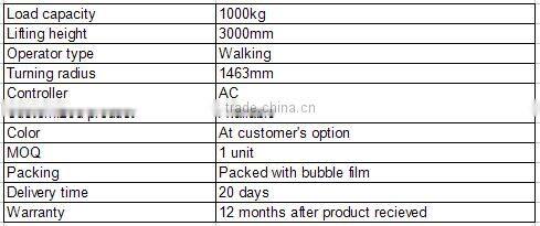 China Cheap 1.2 Ton Battery Powered Electric Stacker