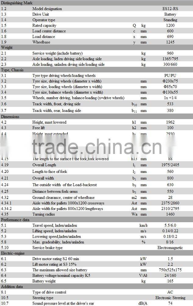 High Quality CE/ISO Approved 1.2T Full Electric Stacker Stand Drive JEAKUE ES12-RS