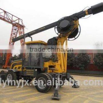 Wheeled DFRJ2.5/5.5/11.5 type rotary drilling rig adopts pressurized drilling work mode, realizing rotary drilling pile of 2.5m, 5.5m, 11.5m depth. With drilling rig of different specifications as options, the diameter range of pile holes is up to 500-1200mm. When the jackrod is retracted after the completion of the construction, the machine can be transferred with a high speed of 0-30km/h, which is flexible, convenient and efficient, is a special piling equipment used in national high-speed rail construction.