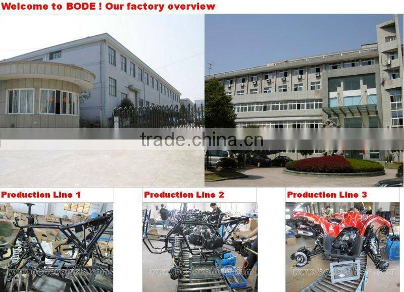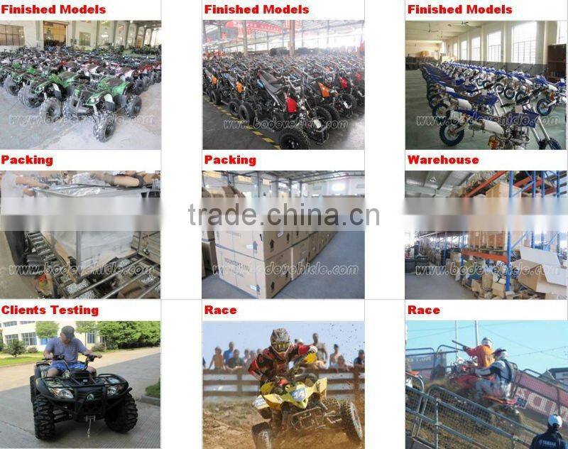 ZHEJIANG BODE INDUSTRIAL CO.,LTD.is a professional company integrated with developing , designing manufacturing and selling. Bode is specialized in manufacturing the dirt bike, ATVs and pocket Bikes, through years of the hard work, Bode now has 2000 employees. With daily output of 1500 pieces of dirt bike,ATVs and Pocket Bikes, Bode has established well sales network in the different provinces of China, and also exported its products to USA ,U.K ,South Korea, Japan and EU. South Africa