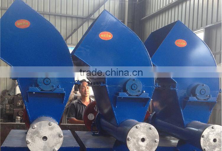 1.Twin shaft crushing blades. This machine adopts manual feeding, the material will be crushed by the twin shaft blades and conveyed to the barrel of the main machine through the screen.