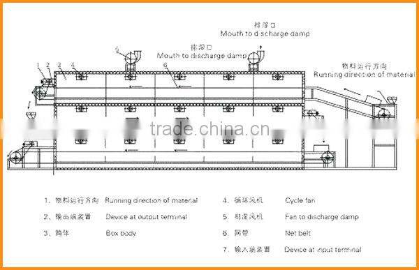 Mainparts: head, working sections,tail, mesh belt,driving settings, fan, furnace, etc.