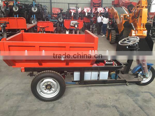 Electric mini dumper tricycle is our main product,using battery as power source in mining, brickyard, sanitation and cleaning. It has been improved many times with the advantage of large power,long work hours, heavy load and suitable for any road.