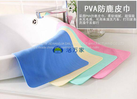 PVA chamois cloth is a synthetic product,made from PVA and other material by high temperature cooking.It’s famous for high absorbent,durability,softness,e-co friendly,beating traditional cotton and attracting more and more people nowadays.