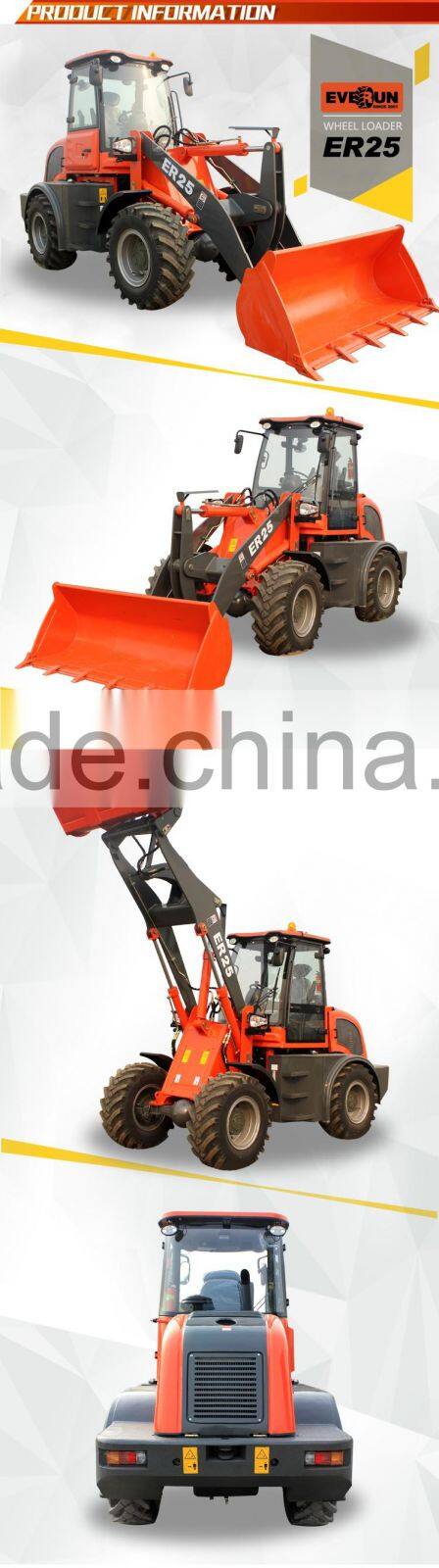 Qingdao EVERUN Front Wheel Loader 2500kg With Luxury Cabin For Sale