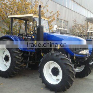 Shangchai 6-cylinder turbocharger diesel engine, rated power 110kw/150HP, fully enclosed cab, air heater, air conditioning,14F+7R shifts of transmission, shifting synchronizer, integrated frame, driving system with modularized structure,CARRARO front axle,rear axle for engineering machinery,rear double wheels,caliper disc brake,revolution for power output shaft of dual revolution 540/1000r/min, fully hydraulic front wheel steering, three groups of single/dual action hydraulic output, plough depth control method by position,floating control,and suspension mechanism of rear-mounted Category III,twelve pieces of front countweight in 400kgs.