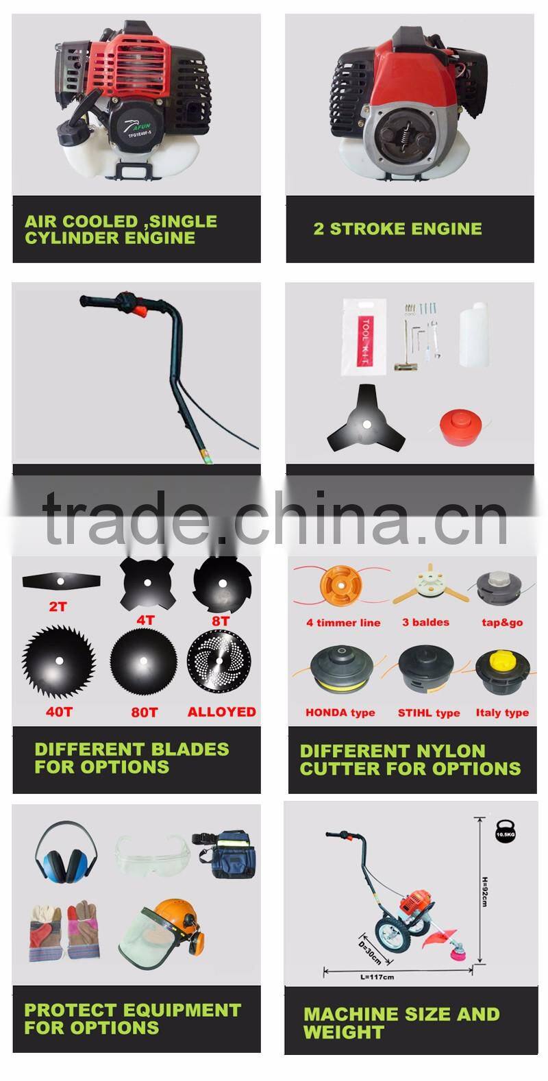 TAFUN makes different ranges of Brush cutter to help make life much easier for trimming grass in your garden , also we have different types of trimmer for different area. side attached ,backpack,hand push types brush cutters for options