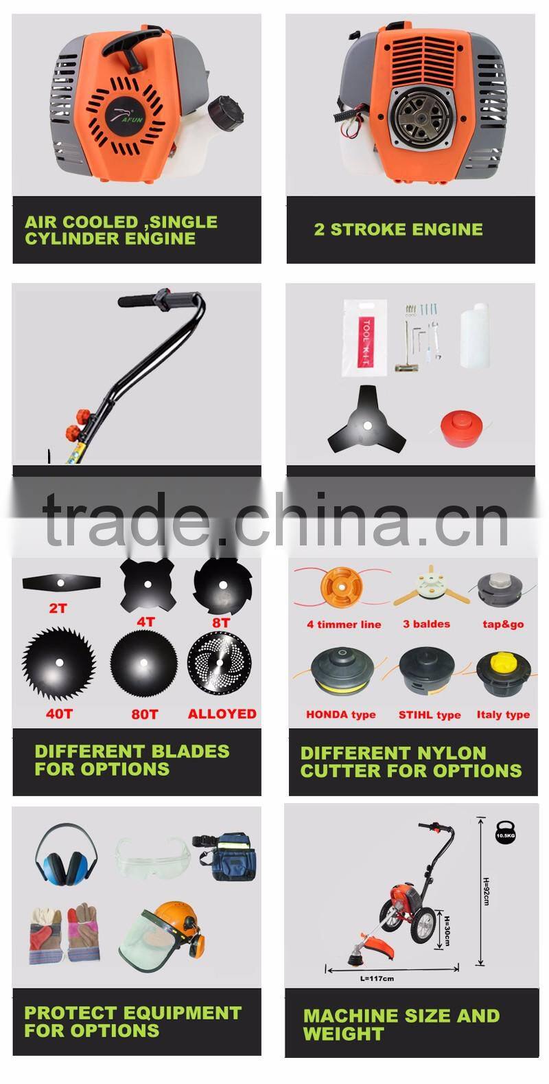TAFUN makes different ranges of Brush cutter to help make life much easier for trimming grass in your garden , also we have different types of trimmer for different area. side attached ,backpack,hand push types brush cutters for options