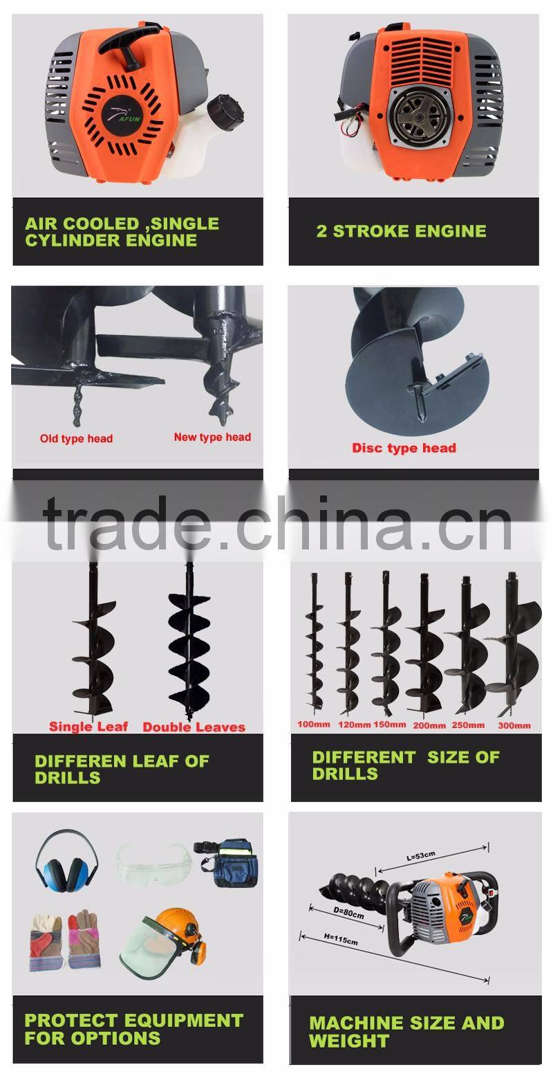 are light weight and ready to use , TAFUN makes different ranges of earth augers to help make life much easier from mass flower planting to fence and dock construction , also we have earth drill and ice drill for different me heavy duty earth augers should handled by two person.