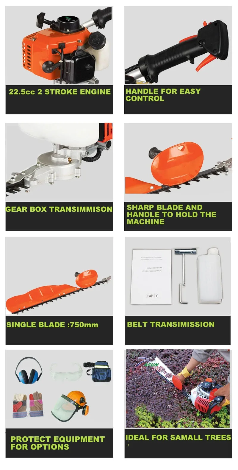 Introducing single . Designed specifically to give a sharp, clean cut that is healthier for your hedge. It features a gutsy 22.5cc engine; And with TAFUN's exclusive Easy Starting system, you're only one easy recoil start away from creating award winning hedges.