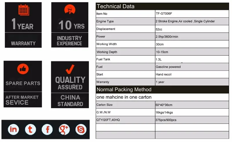 TAFUN is a professional manufacturer and exporter of a variety of high quality garden tools and spare parts, such as gasoline chain saw, chain saw part, brush cutter, brush cutter part, earth auger, chipper shredder, tiller, lawn mower, multifunctional garden tools etc. We have been developing the newest items and producing the most popular models all the time.