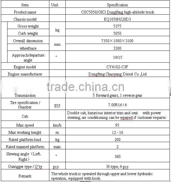 Dongfeng new condition 12meters overhead working truck for sale ----- Notes: