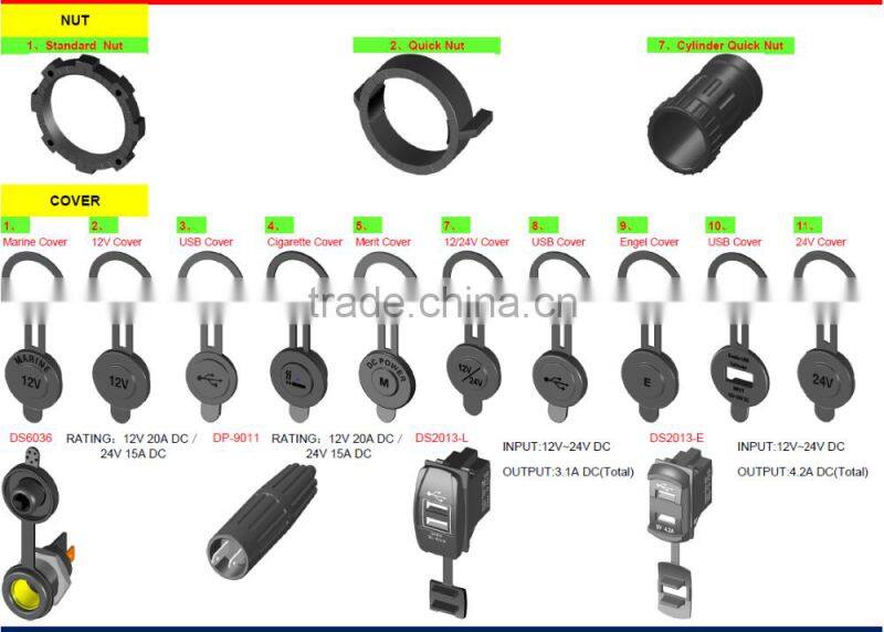 Car 12V DC Socket/Car Socket With Standard Nut And Marine Cover