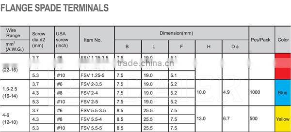 FSV Series Male Furcated Pre-Insulating Cable Lug Sizes