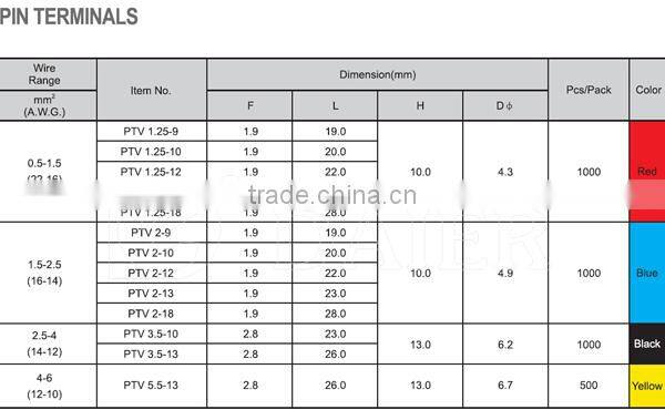 TZ-JTK Type Pin-Shaped Pre-Insulating PTV Cable Lug Pin Type