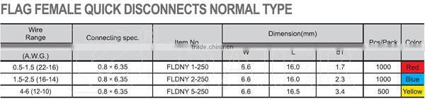 Flag Shaped Female Insulating FLDNY Series Terminal Lug Types