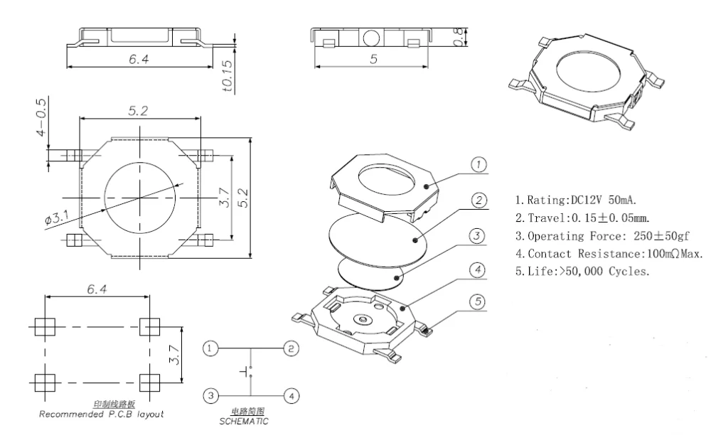 4. Electrical life: >50,000 Cycles