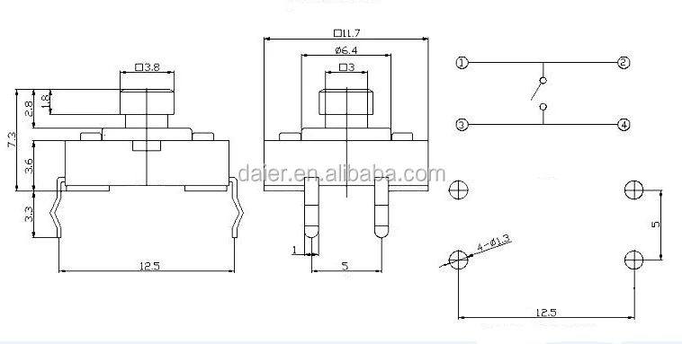 2.50MA 12VDC REACH 4.5*4.5mm dip smd tactile switch
