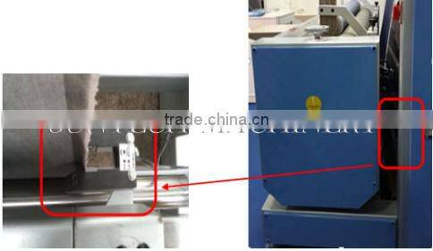 Hand Wheel at fabric feeding place, which could totally open the fabric through adjusting the position of two feeding rollers.