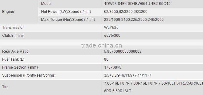 | Tire | 7.50-15,7.50R15, 7.00-16,7.00R16 |