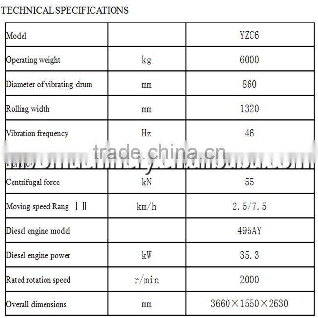 YZC6 Double Drum Vibratory Roller Compactor Asphalt Pavement With Hot Sales and Best Competitive Price