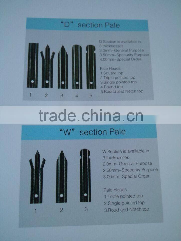 Palisade fence are divided into three types according to the shape: “D” pales fence and “W” pales fence and "Angle" pales fence.