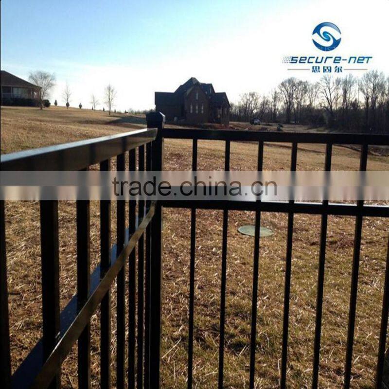 Iron security fence(Ornamental fence)is manufactured using the highestrength steel pickets and rails(aluminum pickets and rails on request), and are available in a wide range of sizesand styles. Panels are attached with high-strength steel or aluminum brackets to powder-coated square tubular steel or aluminum posts. the fence is easy to handle and install, nice appearance, so it is widely used in gardens, schools, factories, pools, residential, industrial and commercial security projects.