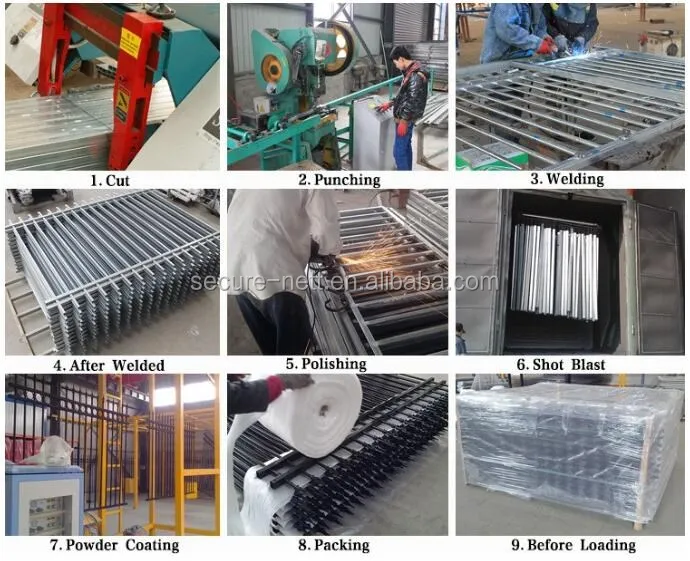 We have five QC people, they control thewrough iron galvanized steel security fence quality strictly , from raw material, produce process,surface treatment, packing and loading into container. we take pictures step by step and send to our client.