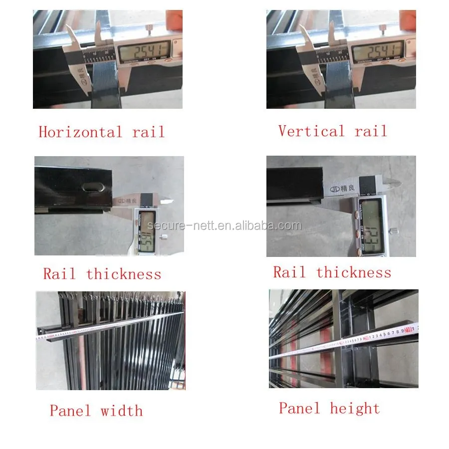In order to make sure the quality of the wrough iron galvanized steel security fence , there will be three times measurement.