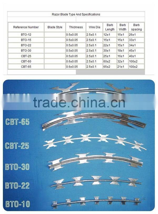 BTO-11 BTO-22 CBT-60 CBT-65 Razor Wire for sale/razor wire price/concertina razor barbed wire