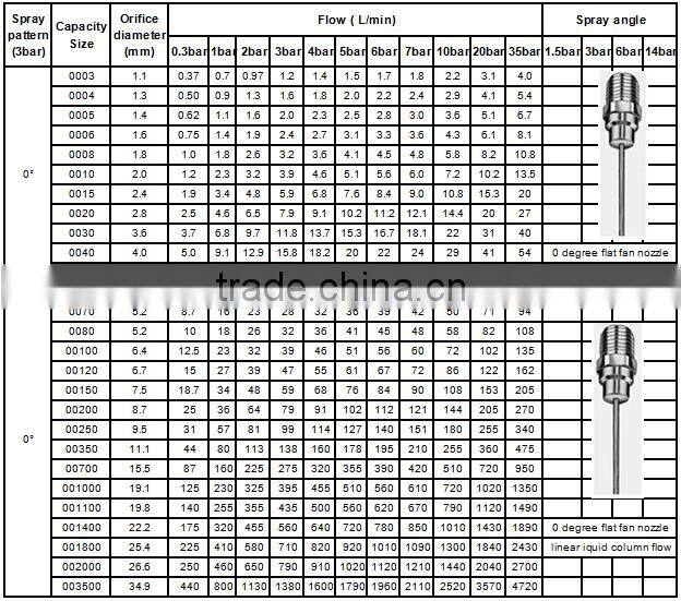 Stainless steel SS brass 0 degree flat fan liquid flow spray nozzles