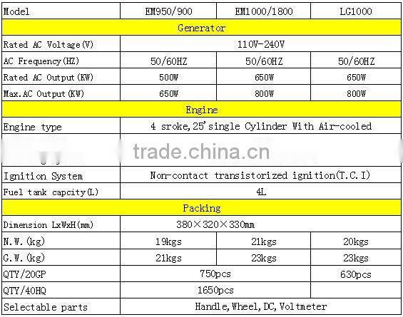 850w Gasoline GeneratorNegotiableMOQ: 1 Set