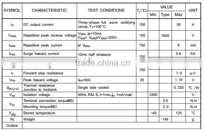 1) The isolating voltage between the chips and cooper base is 2500VAC