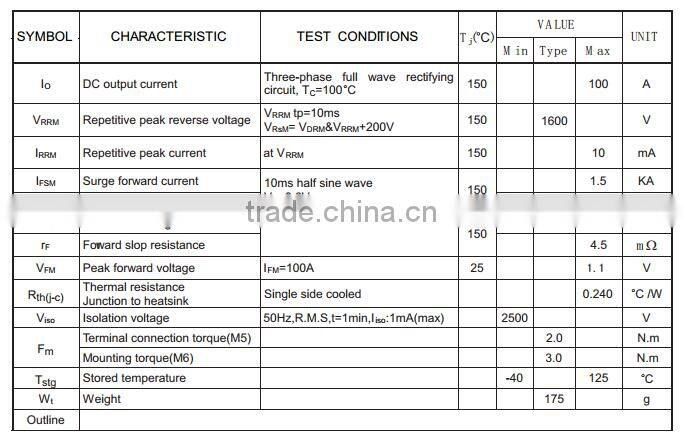 1) The isolating voltage between the chips and cooper base is 2500VAC