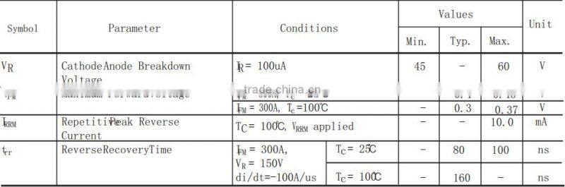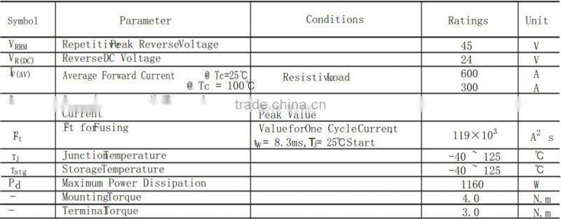 3) Average Forward Current : IF(AV.) = 300A @ Tc= 100℃
