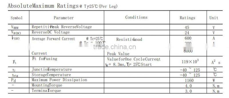 Home > Products > 11. Module > High Precision MBR 300A 45V Ultra -Fast Soft Recovery Diode Module