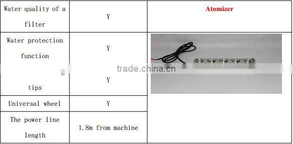 negativeion and low failure rate and easy maintenance, the output fog grain diameter only be 1- 10 μ. The stainless steel body, powder coated, beautiful appearance, standard filling water mouth, switch andoutlet